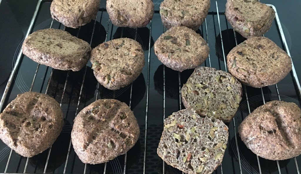 Det som er så genialt med disse rundstykkene er at de metter ordentlig, er supergode og har ei hard skorpe. Noe som ikke forekommer så ofte i glutenfri bakst. -OG de er uten korn, gjær, elting og heving og alt det der..!