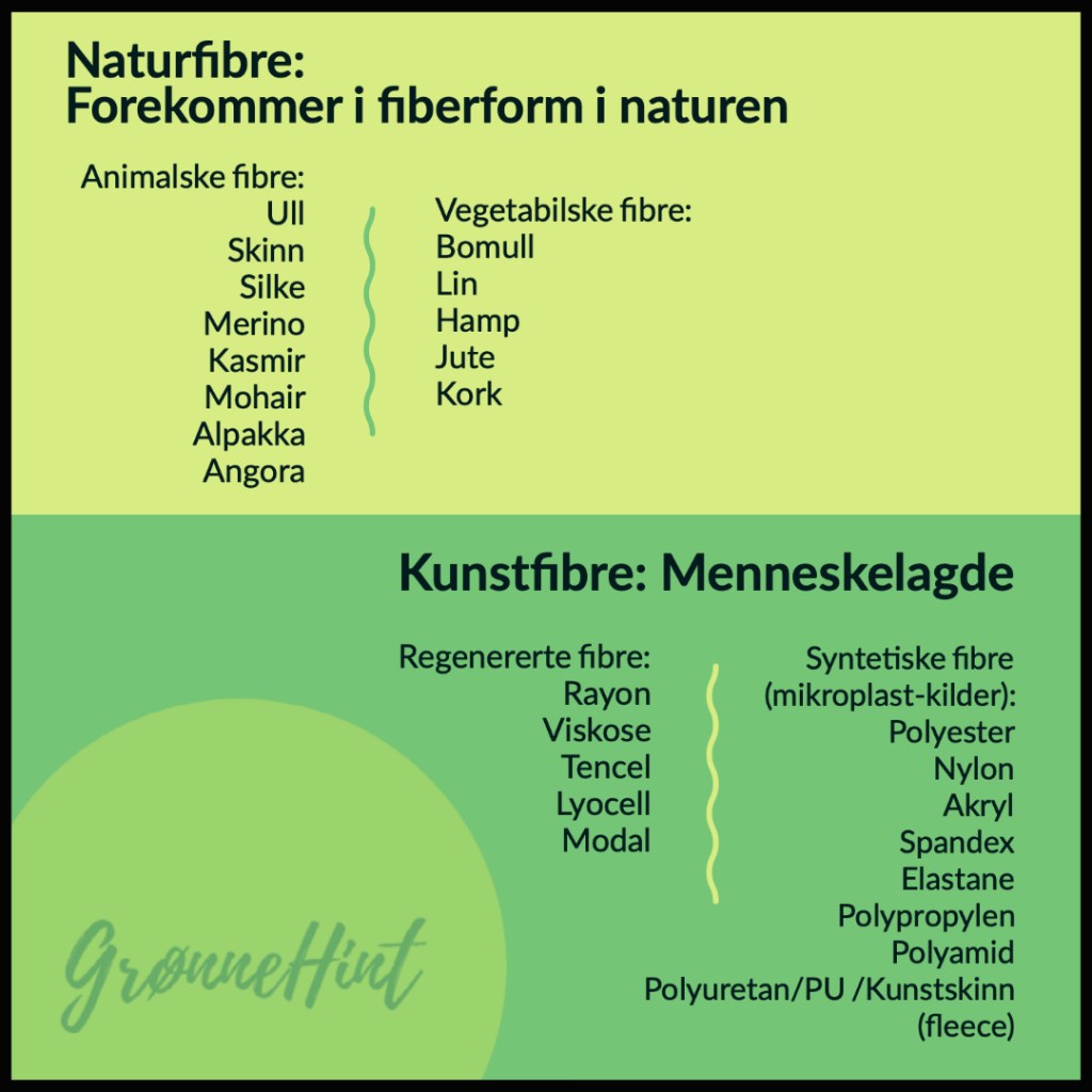 -Her finner du også en oversikt over flere navn på naturfibre, regenererte fibre og syntetiske fibre: